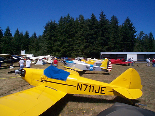 Hesse had a clean little yellow bird. He’d flown up all the way from his base in Eureka California *in one day*. Just three hundred miles in a Fly Baby in one day was enough to practically kill me, and Bob is 75 years old! He did say he got a bit stiff. When he arrived at Arlington, the staff had asked him if he needed help parking. He answered, “No, but get a shoe horn and help me get out of this thing!”
